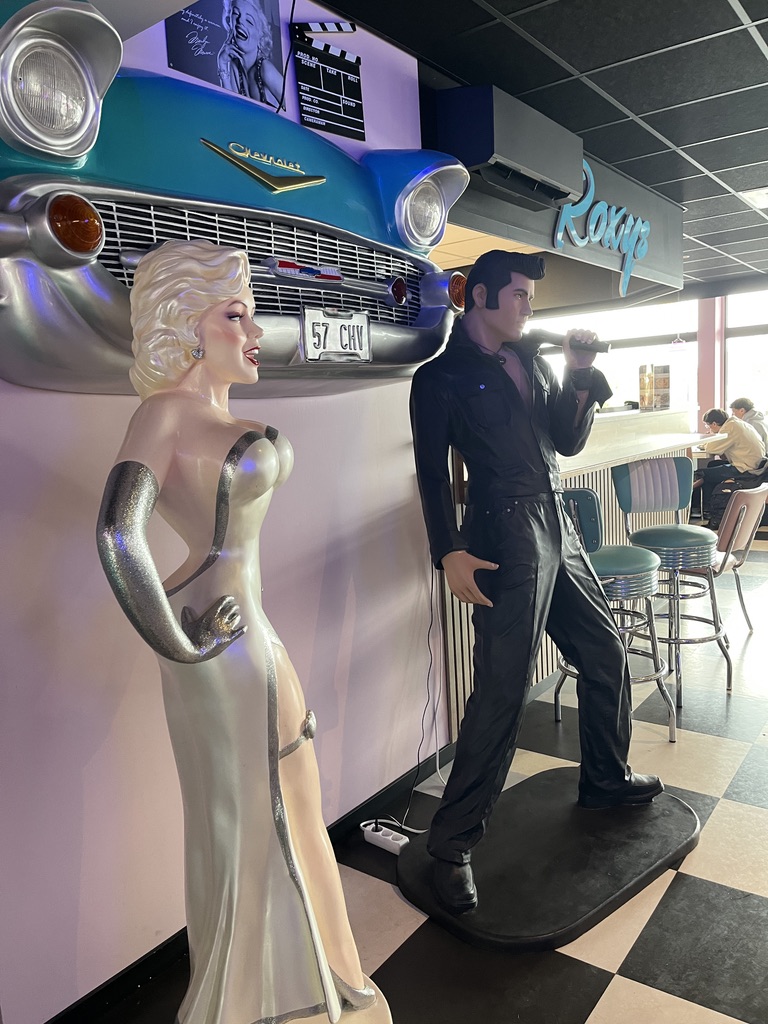 Mauvais mariage entre Elvis Presley, Marilyn Monroe et la cuisine japonaise. Mais le plat de sushis est acceptable. Ensuite, très joli trajet uniquement en voiture, le temps est épouvantable. Nous arrivons tout au Nord de cet itinéraire, à Stavesundholmen, tout petit village à la pointe. Un pêcheur et sa femme, qui s’en vont à notre arrivée, et la pluie qui continue. Tant et si bien que nous oublions même de faire des photos. Le paysage est pourtant sublime malgré le mauvais temps. Il n’a rien à envier à ce que nous avons vu dans le golfe du Morbihan ou la mer du Japon. Retour vers Bergen où nous trouvons une place dans un camping, un peu mieux logés qu’à Copenhague, mais avec des sanitaires bien indigents (il faut traverser la route pour aller au toilettes…)